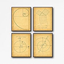 数学ポスター 4枚セット フィボナッチ ゴールデン スパイラル ピタゴラス セオレム オイラー フォーミュラ アルキメデス スパイラル数学 ウォールアート WB210 16x20