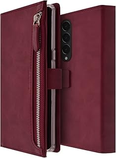 MOLANCANO z fold 3 ケース,ギャラクシーzフォールド3ケースzフォールド3ケースノートブックタイプケースファスナー付きPUレザーフルプロテクションワイヤレス充電互換カードポケットギャラクシーZフォールド35Gケース磁気タイプZフォールド3カバーケースウォレットタイプスマートフォンケース,Samsung Galaxy Z Fold 3 Case 2021. Bestie_zfold3_Wine(ワイン)