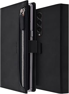 MOLANCANO z fold 3 ケース,ギャラクシーzフォールド3ケースzフォールド3ケースノートブックタイプケースファスナー付きPUレザーフルプロテクションワイヤレス充電互換カードポケットギャラクシーZフォールド35Gケース磁気タイプZフォールド3カバーケースウォレットタイプスマートフォンケース,Samsung Galaxy Z Fold 3 Case 2021 Bestie_zfold3_Black (ブラック)