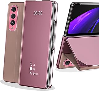 NINKI Galaxy Z Fold 3カバー 防水 PU革+PCフレーム+ガラス面 衝撃保護 薄型 快適 スタンド機能 スクリーン保護 全面ケース Samsung Galaxy Z Fold 3ケース Galaxy 5Gカバー (ピンク)