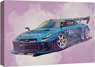 wall26 キャンバスプリント ウォールアート ブルー 水彩スタイル パープル 日本のスポーツ 車 交通 車 イラスト モダンアート 伝統的 マルチカラー パステル リビングルーム 寝室 オフィス用 - 32インチ x 48インチ