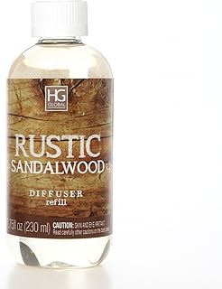 (RUSTIC SANDALWOOD) - Hosley Premium Rustic Sandalwood Reed Diffuser Refills Oil, 230 ml (7.75 fl oz) Made in USA. BULK BUY. Ideal GIFT for weddings, spa, Reiki, Meditation settings W1