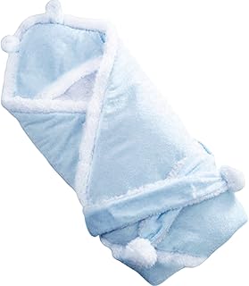 (ディーコッテ) D'Kotte ベビー ふわふわ ボア フリース 耳付き フード おくるみ 肉厚 モコモコ あったか 素材 赤ちゃん ベルト 付き アフガン ブランケット スリーパー 寝かしつけ お出かけ 出産祝い (ブルー)