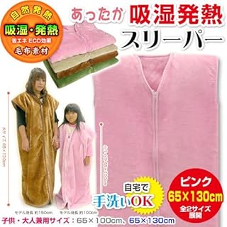 メーカー直販 子供・大人兼用 吸湿発熱 毛布 スリーパー(かいまき) 大サイズ 65×130cm (ピンク)