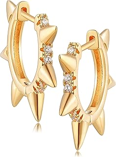 Fettero ゴールド ハギー フープイヤリング スター クロス ロック 稲妻 スパイク 邪悪な目 ファン ビーズ ダングル ドロップ スネーク スリーパー 14K ゴールドメッキ かわいい ミニマリスト シンプル ボーホー 低刺激性 ジュエリー レディース メンズ ギフト
