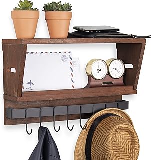 brightmaison 鍵と郵便受け 壁用 コートラック 棚付き 玄関オーガナイザー 犬用リーシュ 電話 財布 メールホルダー キーフック付き 木製ウォールナット