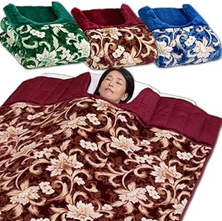 毛布 シングル 2枚合わせ 衿付き くり衿 マイヤー毛布 あったか 三層構造 なかわた増量 通常の2倍入り 140×230cm(エンジ)