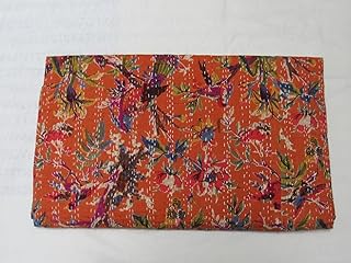 Yuvancrafts インディアンハンドブロック フローラルプリント カンタキルト ハンドメイド ビンテージ クイーンサイズ コットン カンタ スローブランケット ベッドスプレッド (マルチカラー、ツインサイズ)