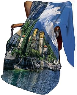 イタリアの装飾 ひざ掛け 、コモ湖の山々と雲のデジタル画像 150x130cm 軽量 オフィス 旅行 出張 キャンプ用品 エアコン対策 青と緑のパノラマ風景