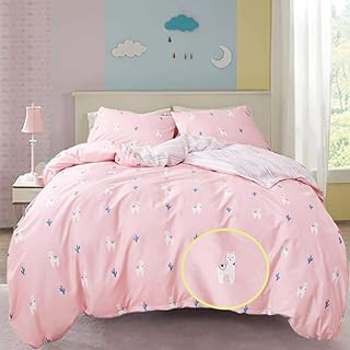 karever ガールズ ピンク 掛け布団カバーセット ツイン アルパカ サボテン コットン 寝具セット リバーシブル ストライプ 三角形 幾何学模様 掛け布団カバーセット 幼児 子供 小さな女の子
