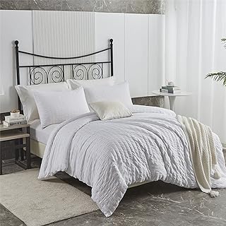 掛け布団カバーセット ツイン シアサッカー ストライプ テクスチャード加工 100% ウォッシュ加工マイクロファイバー ファスナー付き掛け布団カバー1枚 枕カバー2枚 ウルトラソフト お手入れ簡単 シンプルスタイル ファームハウス 掛け布団カバーセット(ホワイト/ツイン)