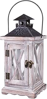 BESTONZON ヴィンテージ装飾ランタンキャンドルホルダー 木製 素朴なヨーロピアンスタイル テーブルトップ マントル 壁掛けディスプレイ パーティー装飾 屋内 屋外 - 28 x 4.92インチ x 4.92インチ