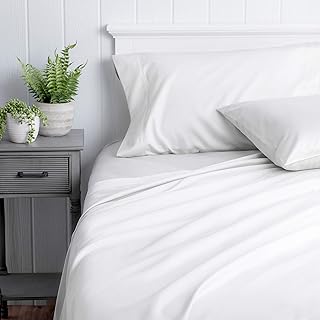 Welhome 綿100% サテン織ストライプシーツ | 3点セット | ツインXLサイズ | ホワイト | 500スレッドカウント | 深いポケット ボックスシーツ 18インチまでのマットレスに対応 | シルクのようにソフト | 通気性 | 簡単フィット