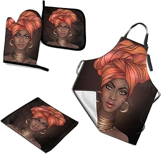 Abucaky 4ピース アフリカ系アメリカ人 女性 防水エプロン オーブンミット ポットホルダー 吸収タオル ホステス用料理 キッチン ホームデコレーション