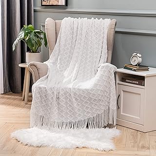 MIULEE プレミアム 暖かい テクスチャ ニット ホワイト スロー ブランケット - 50 x 60インチ ソフト キュート 快適 ソファ ベッド 椅子 旅行 軽量 ブランケット 赤ちゃん 男の子 女の子 犬 猫用