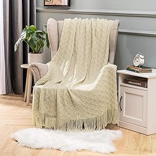 MIULEE プレミアム 暖かい質感 ニットベージュ スローブランケット - 50 x 60インチ ソフト キュート 快適 ソファ ベッド 椅子 旅行 軽量 ブランケット 赤ちゃん 男の子 女の子 犬 猫用
