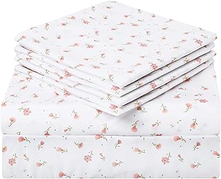 HOMEIDEAS ベッドシーツセット エクストラソフト 起毛マイクロファイバー 1800 寝具シーツ - 深いポケット しわ&色あせ防止 - 4点 (キング、ピンクフローラル)