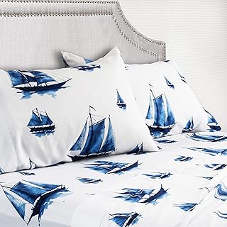 DriftAway 港 ヨット オーシャンプリント柄 エクストラソフト ベッドシーツセット ネイビー 4点 キングセット