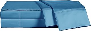 ベッドシーツセット クイーンサイズシーツ 4ピース 600スレッドカウント スーピマコットン100% ソフト&シルクサテン織り 最大18インチのマットレスにフィット 深いポケット 通気性&色あせ防止 (ピーコックブルー、ブルー)