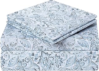 HOMEIDEAS ベッドシーツセット エクストラソフト 起毛マイクロファイバー 1800 寝具シーツ - 深いポケット しわ&色あせ防止 - 4点 (クイーン、ブルーペイズリー)