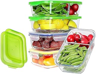 JinaMart 4個セット (35オンス)+ 2 エクストライージー蓋 ラージ 1&2コンパートメント ガラス 食事準備容器 漏れ防止 ガラス弁当箱 気密 ランチコンテナ 電子レンジ対応 仕切り 蓋 BPAフリー (10個)