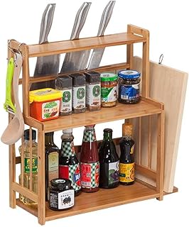 キッチンラック 調味料棚 スパイスラック 包丁立て まな板スタンド 省スペース 多機能 竹製品 高さ調整可能 3段式 45.8*18*50cm