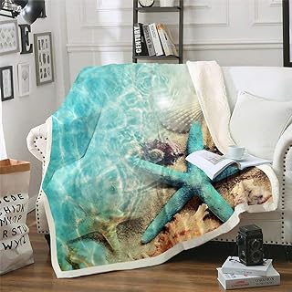 Erosebridal オーシャンビーチ フリースブランケット ヒトデ コンク シェルブランケット スロー ティール カーム 海岸 シェルパ ブランケット 子供 女の子 レディース ハワイアン ビーチ ホリデー ファジーブランケット クイーン 90インチx90インチ パープル イエロー