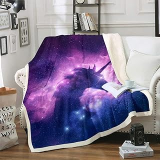Erosebridal Galaxy ユニコーン フリースブランケット 星空 馬 フラシ天 ベッドブランケット 子供 女の子 男の子 大人 モダンスタイル ブランケット スロー ファジースロー 寝室 カウチ用 パープル ピンク ツイン 60インチx80インチ