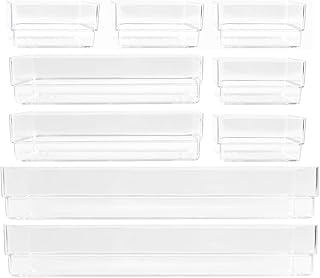Houseables 引き出しオーガナイザー バスルーム収納 (3インチx2インチ) (6インチx2インチ) (9インチx2インチ) 9インチx2インチ) 9個パック 透明 各種サイズ プラスチック 仕切り オーガナイザー BPAフリー 環境に優しい 化粧品 キッチン お手入れ簡単