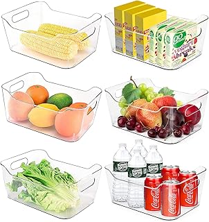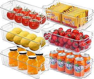 FOOYOO 冷蔵庫オーガナイザービン - 6個 プラスチック冷蔵庫ストレージビン ハンドル付き - 冷蔵庫オーガナイザーとストレージ クリア パントリー、キッチン、冷凍庫、キャビネット整理に BPAフリー