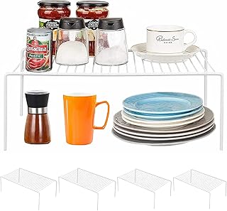 Smartor キャビネットストレージシェルフラック 4個パック 拡張可能 積み重ね可能 キッチンカウンターシェルフオーガナイザー 多目的整理 パントリー/ベッドルーム/バスルーム用 ホワイト