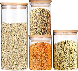 ガラス製キッチンキャニスター 気密竹蓋付き キッチン/バスルーム/パントリー整理用 小麦粉/砂糖/コーヒー/キャンディ/スナックなどに最適 (4)