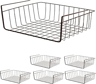 Smart Design 棚下収納バスケット Mサイズ ぴったりフィットするアーム スチールメタルワイヤー 錆びにくい 棚下/キャビネット/パントリー/棚の整理に キッチン(16 x 5.5インチ) ブロンズ製 6個セット