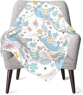 DADABULIU ブランケット ひざ掛け ベビー 毛布 ゴリラ 子供絵 キュート 花 葉 サル 厚手 軽い ふわふわ ポリエステル シングル 着る 76cm × 100㎝ 赤ちゃん 暖かい おしゃれ かわいい 通気性 保育園 お昼寝 出産祝い